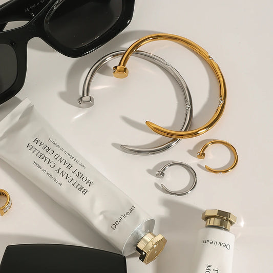 • Uworld Classic 18K Gold Color Plated Stainless Steel Asymmetric Half Chain OT Buckle Smooth Surface Bracelet Women's Jewelry Par